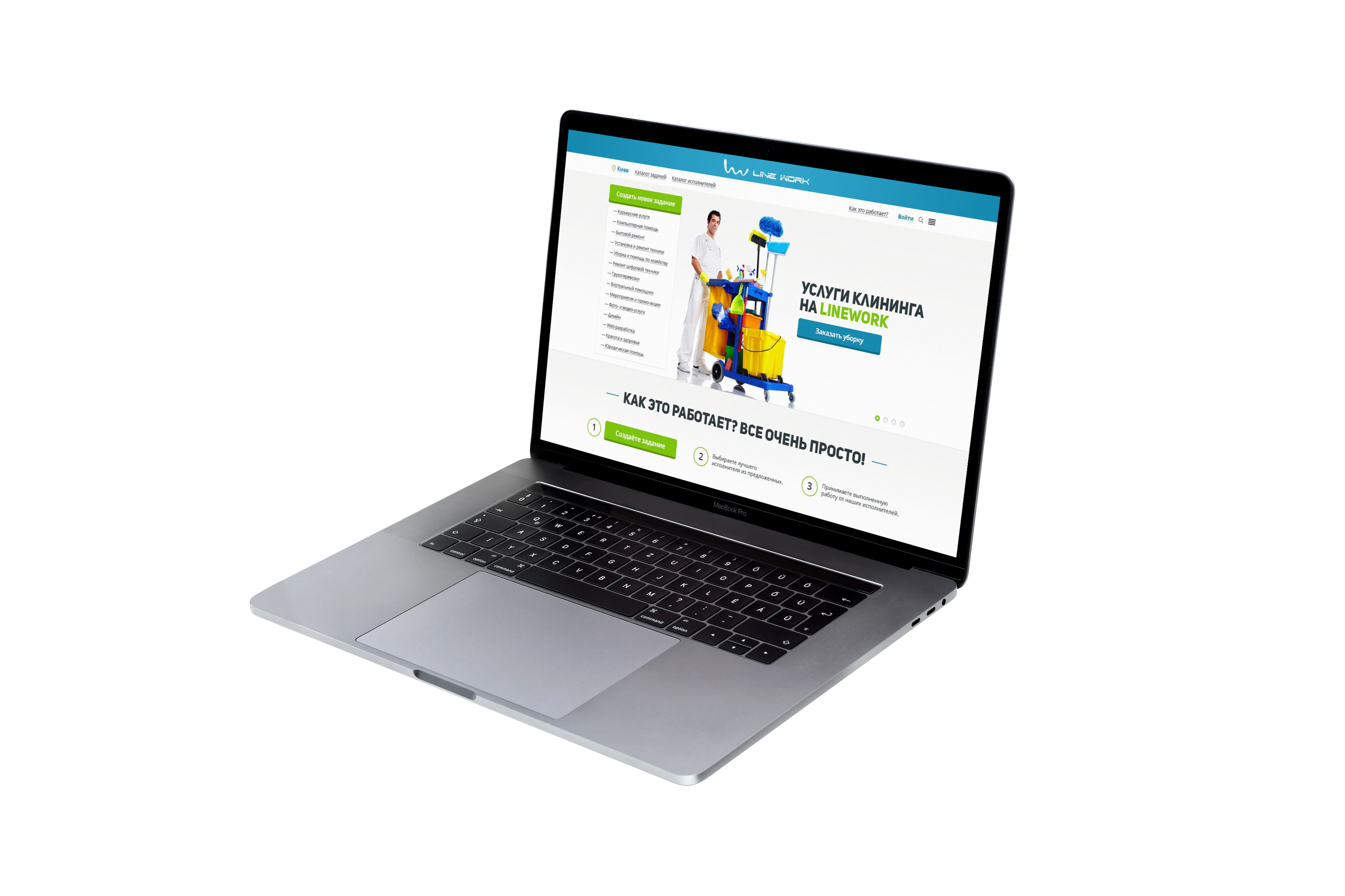 Первый экран встречает удобным и информативным слайдером с возможностью задать баннер под любую популярную категорию, а также кнопкой перехода к быстрому размещению задания. Слева для упрощения навигации оптимально размещен блок со ссылками на основные категории. Блок «Как это работает» показывает простоту сервиса. Ниже представлены блоки активностей сервиса «Последние задания», «Популярные исполнители», «Последние отзывы», которые вовлекают пользователей с первой страницы и повышают трастовость к сайту.
