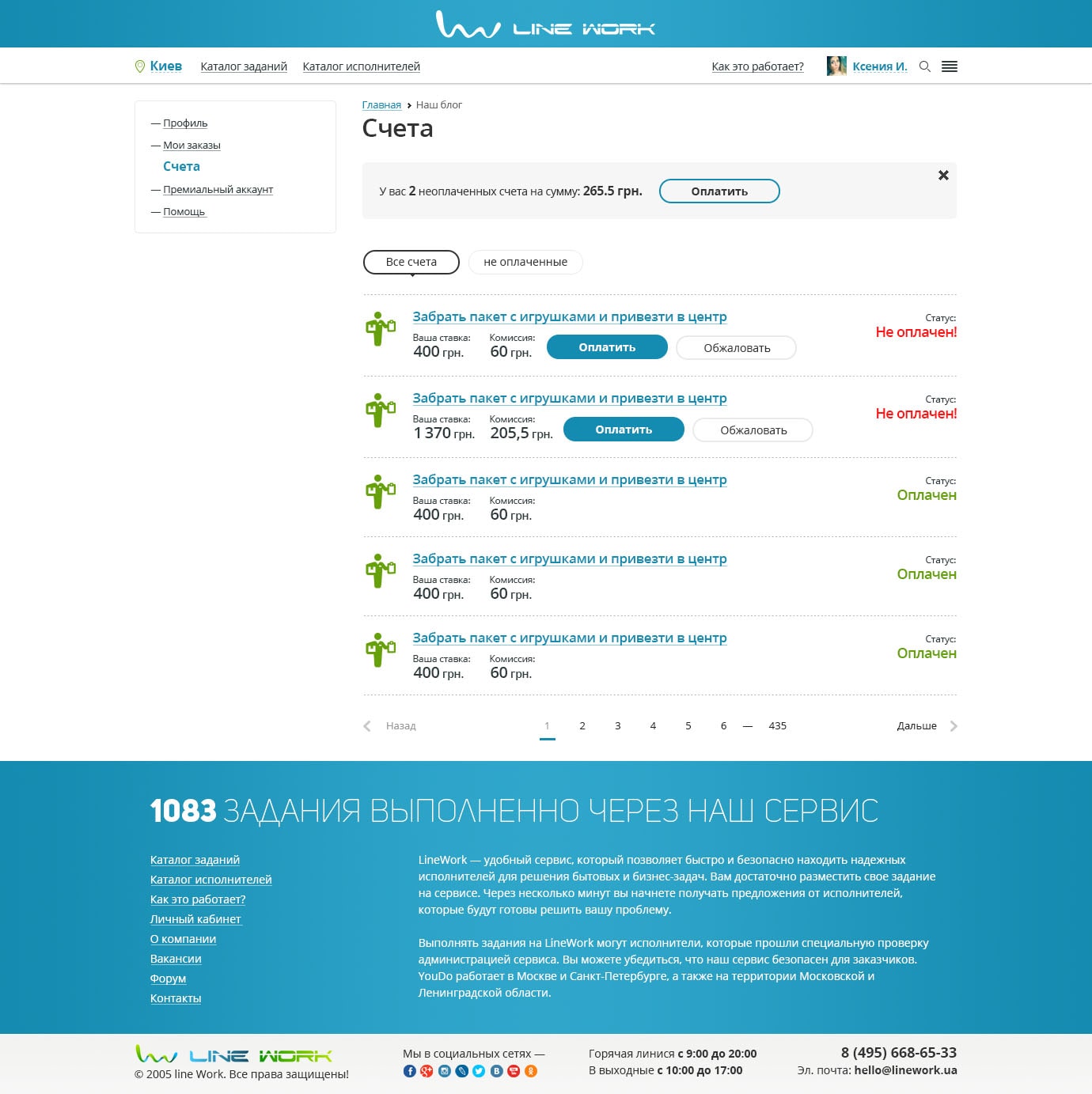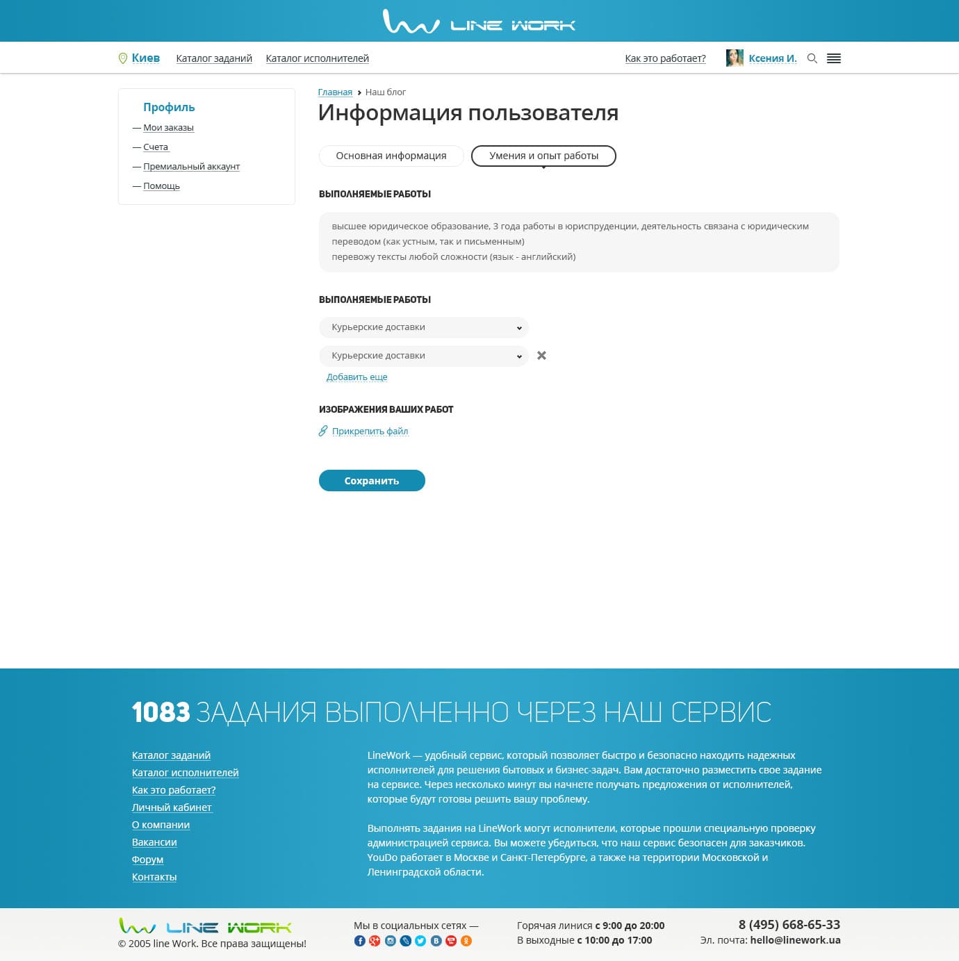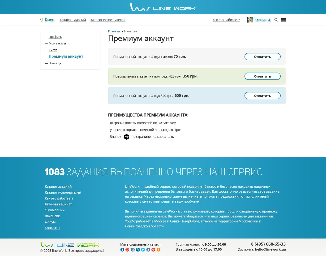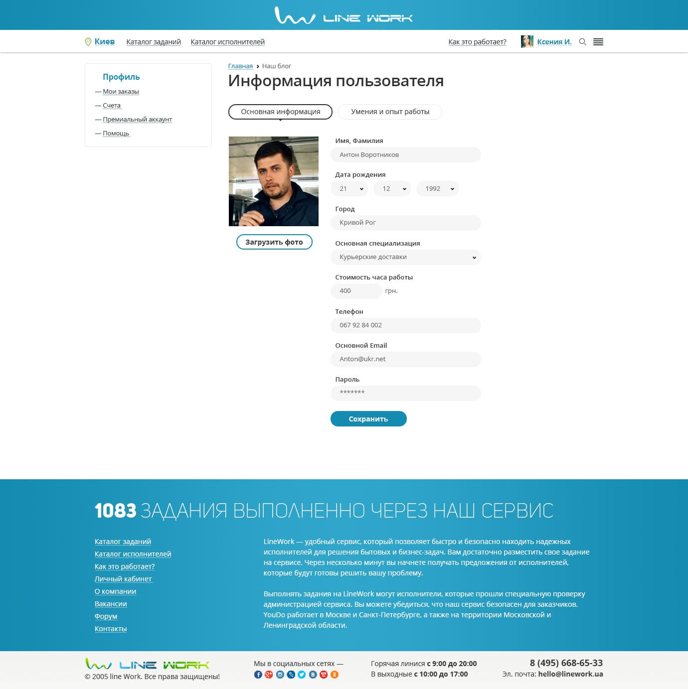 Работа это существенная часть нашей жизни, поэтому профиль исполнителя напоминает страницы соц.сети. Содержит основную информацию пользователя, настройки и разделение заданий по ролям Заказчика и Исполнителя, а также возможность покупки PRO-аккаунта и счета.