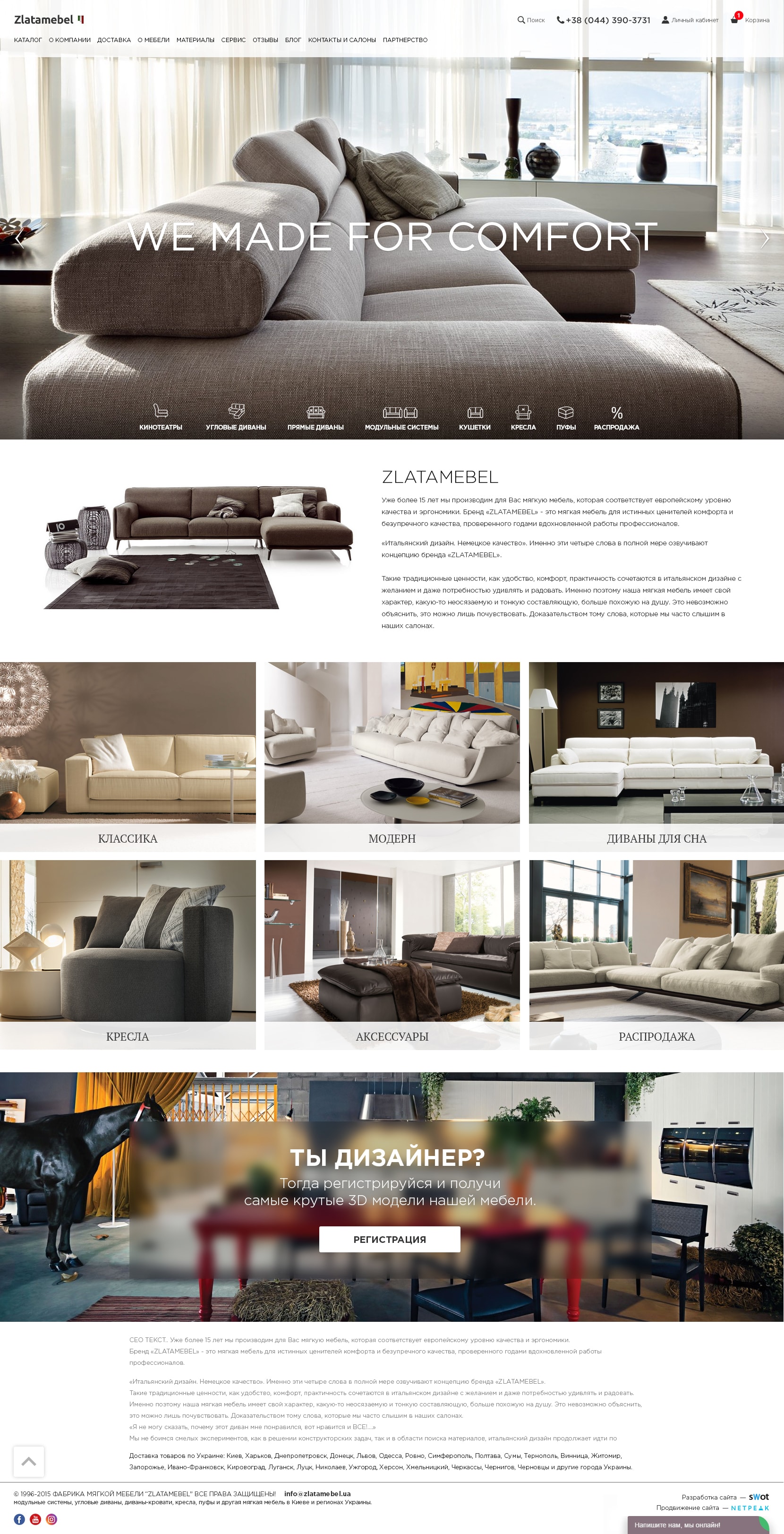 В SWOT создали современный, минималистичный и легкий дизайн для нового сайта ZlataMebel, обеспечили самую интуитивно понятную и удобную навигацию по сайту в мебельной отрасли Украины. Они не только справились, а и превзошли задачу – сделать так, чтобы сайт непосредственно не продавал, а вызывал желание прийти и купить продукцию компании в салон. Они поняли нас, новый стиль это то, что нужно!
